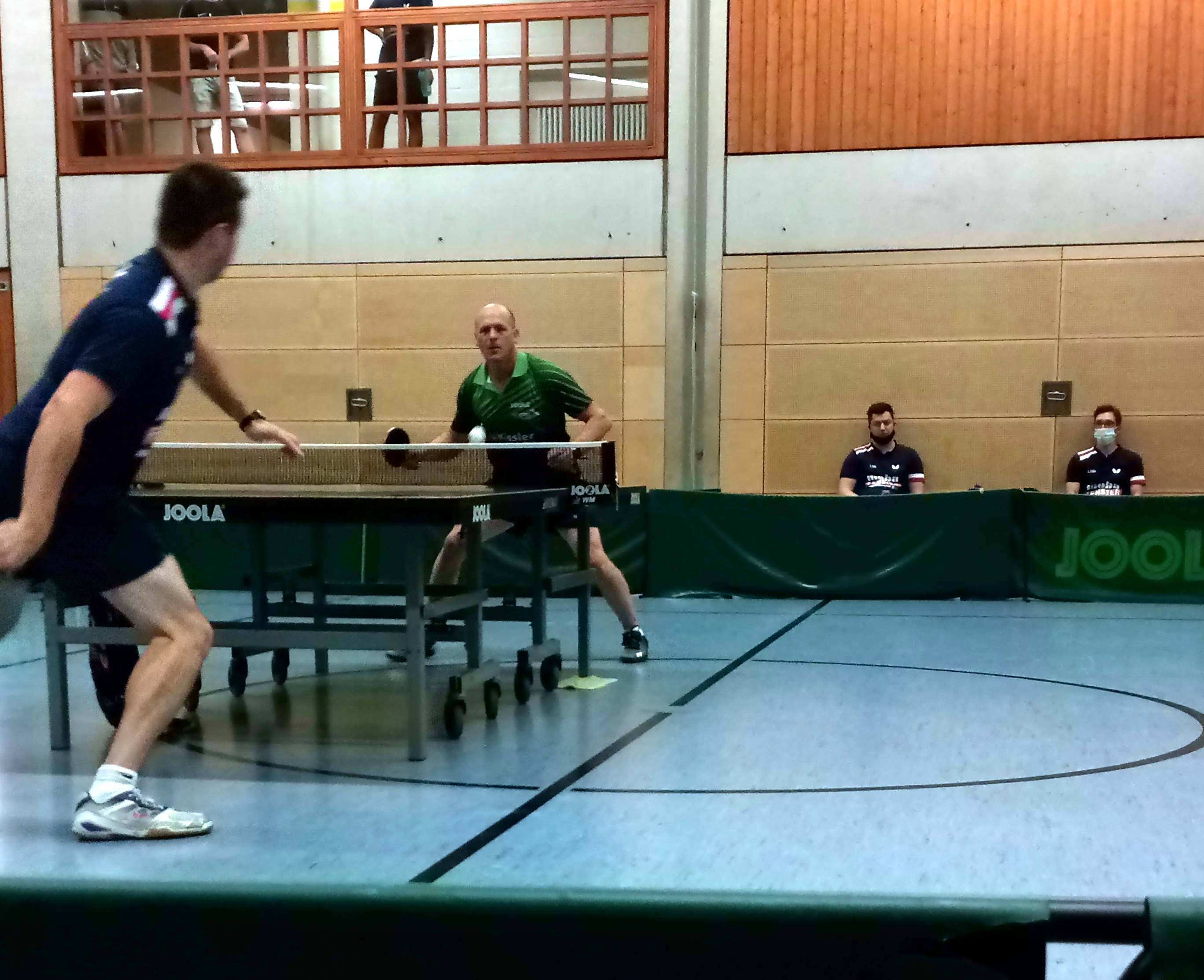 Zum ersten Spiel ging es am Samstag Abend nach Neustadt. Mit strengen Coronaauflagen ab dem Betreten des Gebäudes. Ganz Ohne Zuschauer fühlt sich der Wettkampf dann doch wie ein Geisterspiel an. Die Mannschaften saßen streng getrennt an den gegenüberliegenden Seiten der Halle. Ohne Doppel ging es dann direkt mit dem vorderen Paarkreuz los. Lienhard Scholz hatte nach 5 Sätzen gegen Rapp die Nase hauchdünn vorne bei 15:13, Frank Pfannebecker legte nach zum 2:0. In der Mitte hatte Frank Schulz ein paar Startschwierigkeiten, blieb aber selbst bei 5:10 in Satz 2 cool und drehte auf 12:10. Rolf Ludwig hatte wenig Mühe geben Fromm und so erhöhte die Mitte auf 4:0. Harry Schmitz und Gustav Knapek sorgten für den komfortablen 6:0 Zwischenstand. Im Corona-regelwerk werden nun - ohne Doppel - alle Einzel ausgespielt. Im Durchgang 2 lief es dann ähnlich gut, allerdings gingen 2 Spiele an die Gastgeber. Scholz, Ludwig, Schulz und Schmitz steuerten je 2 Siege bei, so das am Ende ein deutliches 10:2 auf dem Papier stand.